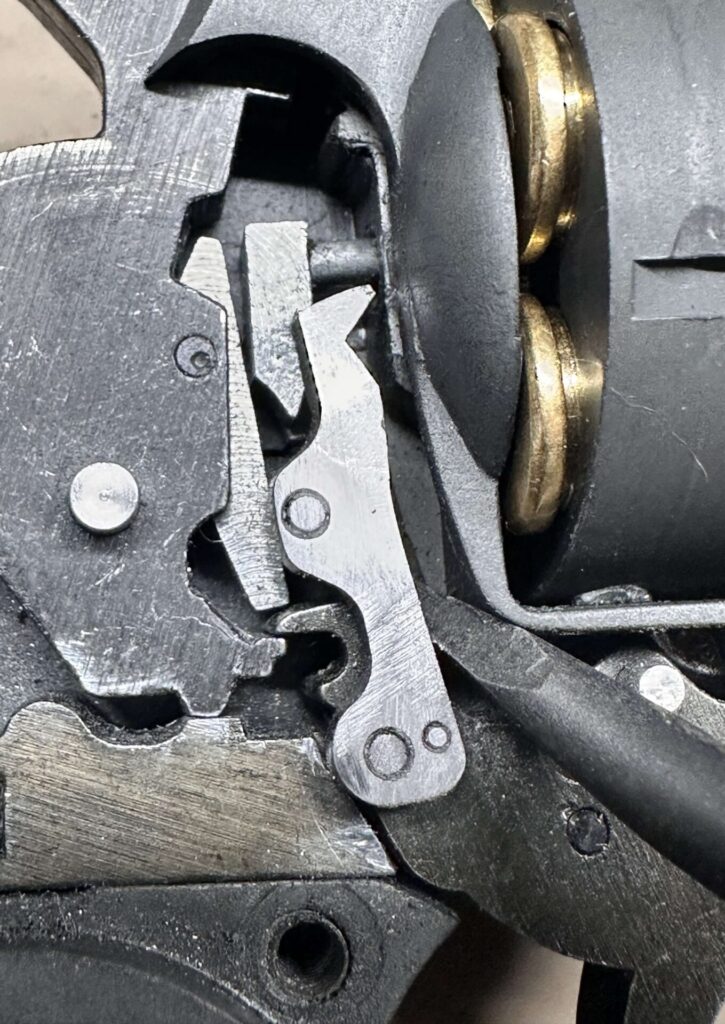 まずトリガー、シリンダーストップのピンが長くて閉まりきっていない。