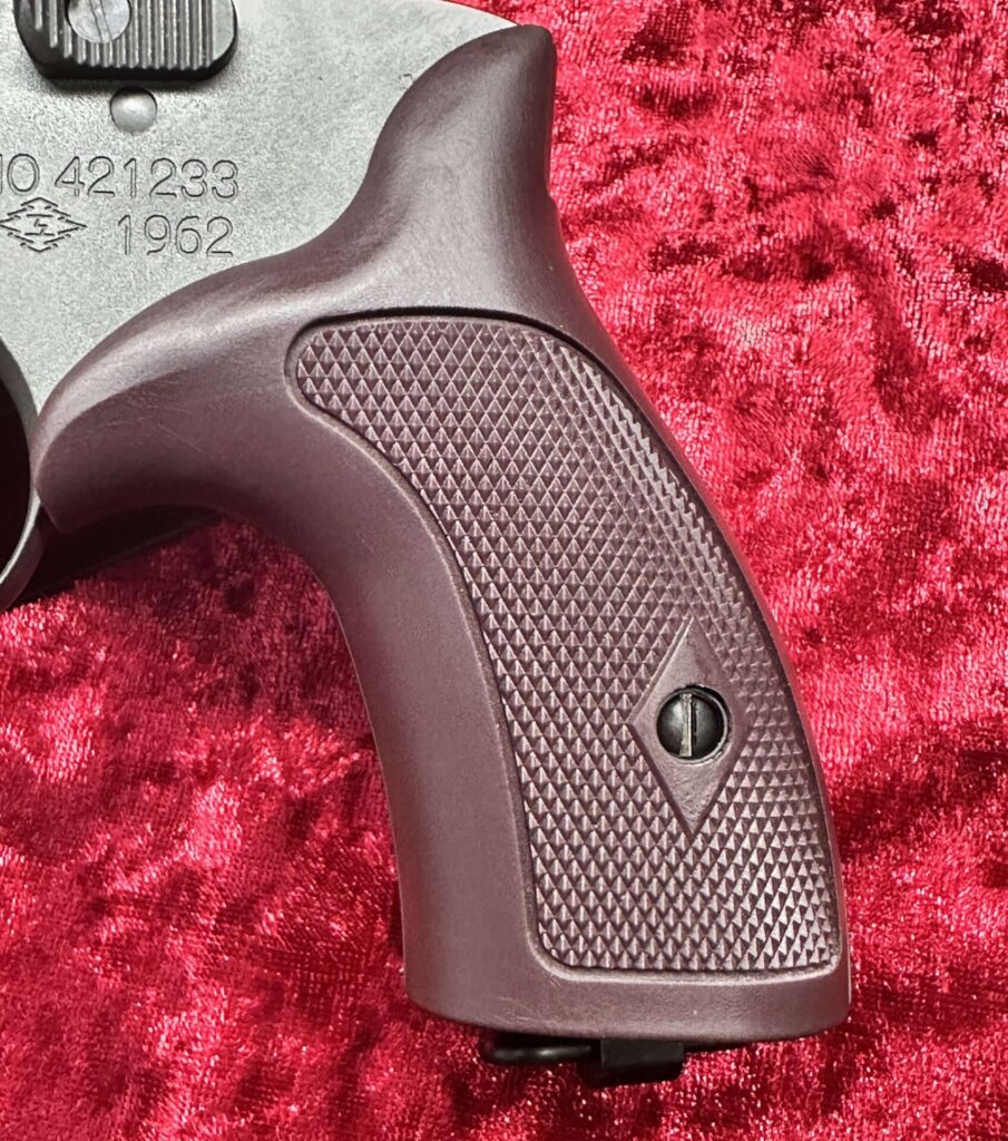 1980年代頃グリップパネルの改良初期型ではグリップ前部が短く、小指が余りがちだった。改良後はフィンガースパー付き、チェッカリングも深くなり、材質は濃いブラウンのプラスチックに変更。